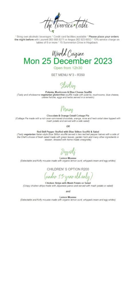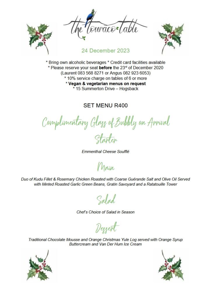 ππ€ΆπΌπ§π»βππ π½ππ§πΎππSix Hogsback Restaurants have delicious Christmas menus lined up for locals and visitors.ππ€ΆπΌπ§π»βππ π½ππ§πΎππ