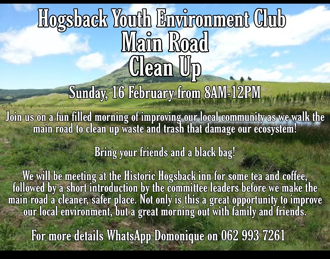 We will be meeting at the Hogsback Inn for some tea and coffee, followed by a short introduction by the committee leaders before we make the main road a cleaner, safer place! Not only is this a great opportunity to improve our local environment, but a great morning out with family and friends.