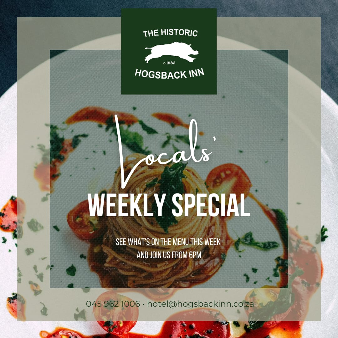 The Historic Hogsback Inn has introduced a weekly special for the locals on a Tuesday from 6pm onwards. Have a look at the special every week.