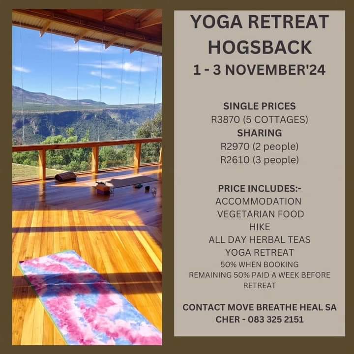 Yoga Retreat + Add to Google Calendar + iCal / Outlook export The event is finished. Tags: away with the fairies, retreat, yoga Date 01 - 03 11 2024 Expired! Time All Day Labels Events Location Away with the Fairies Away with the fairies, 24 Hydrangea Lane, Hogsback, 5721 Category Events Health and well-being Retreats Share this event